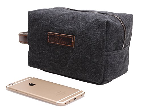-. Feature : ✔Quality Material - Thick Heavy Duty Canvas And High Quality Cow Leather ,Stitching Is Clean And The Inner Seams Are Wrapped, A Handle For Easy Carrying. / ✔Thick Large Zipper - It Has A Leather Pull On It That Makes It Easy To Pull The Zipper Open and Shut,and A Metal Patch On Both Sides Prevents It From Falling Open Completely. / ✔Size - 9 Inch L X 4 Inch W X 5 Inch H, A Great Size To Store Typically Used Toiletries In An Overnight Bag. / ✔Large Capacity - Can Put Your Facial Cleanser, Soap, Mouthwash, And Other Personal Belongings That Suit Inside This Bag. / ✔Multi-Functional Bag- It Can Be A Toiletry Wash Bag ,Travel Storage Organizer ,Makeup Organizer ,Cosmetic Bag ,Portable Travel Kit Organizer ,Household Storage Pack ,Shaving Kit Bag, Shaving Dopp Kit Etc. PRINTED WITH IBLUE LOGO INSIDE AND OUTSIDE.