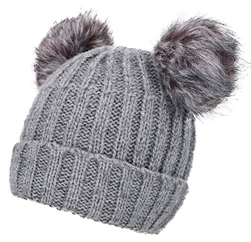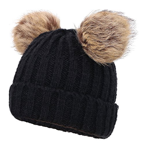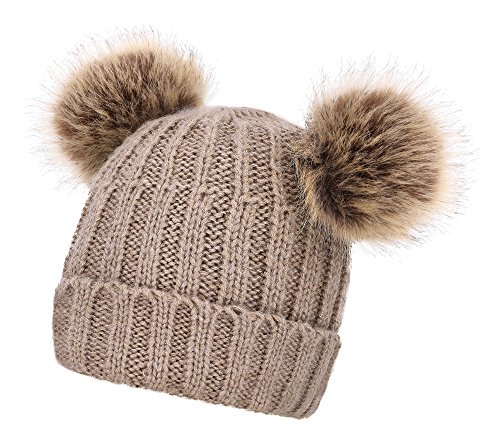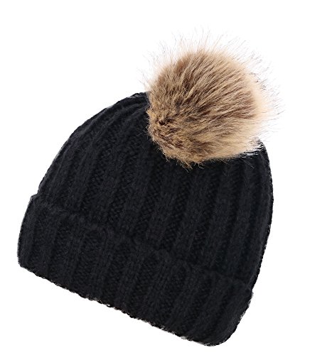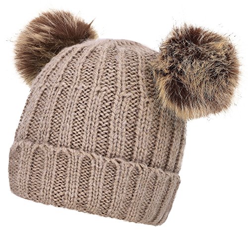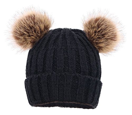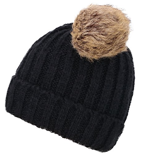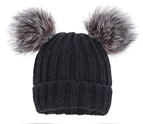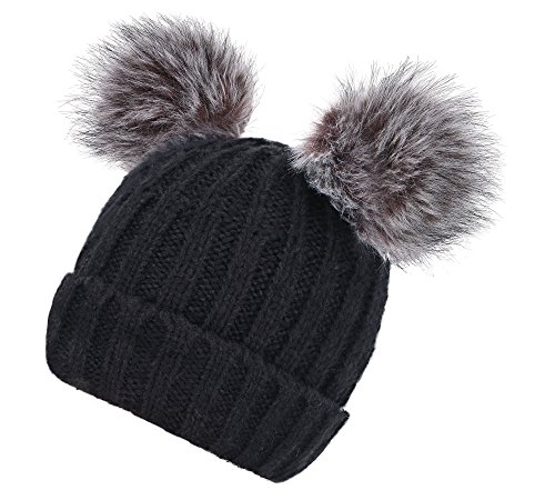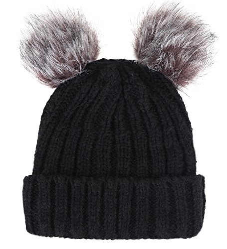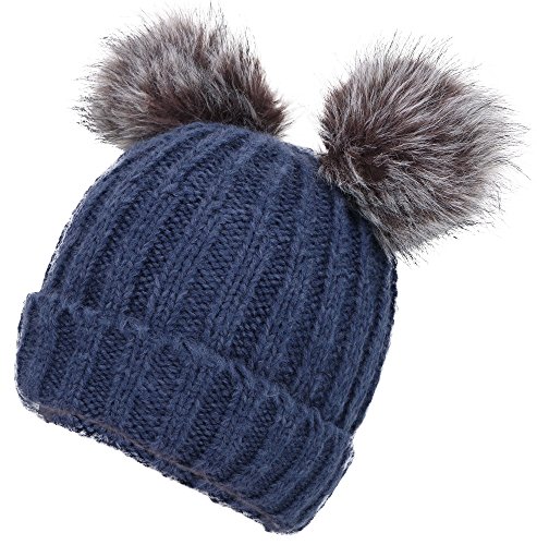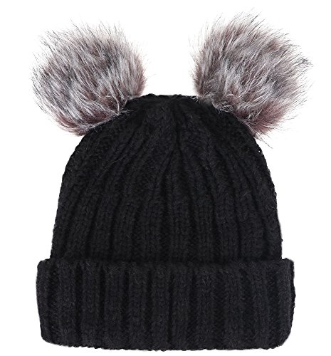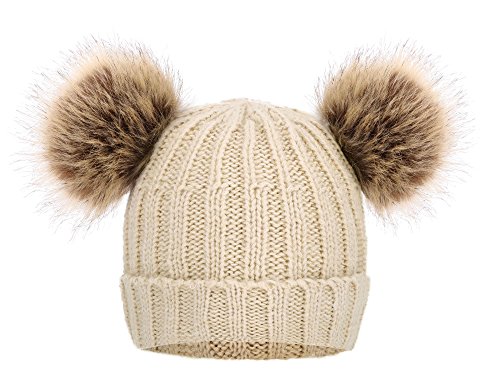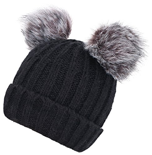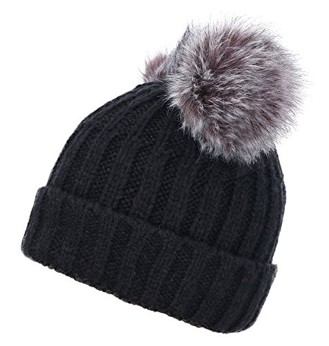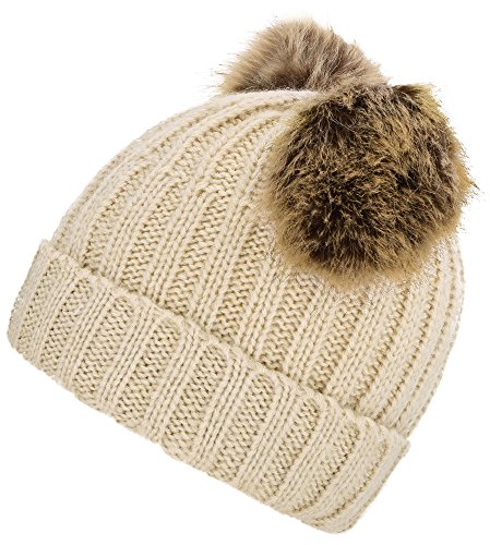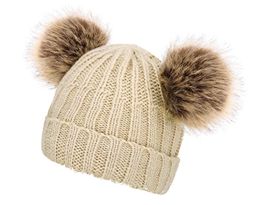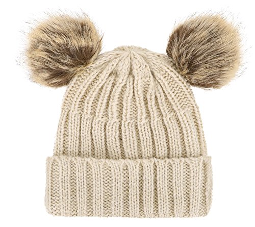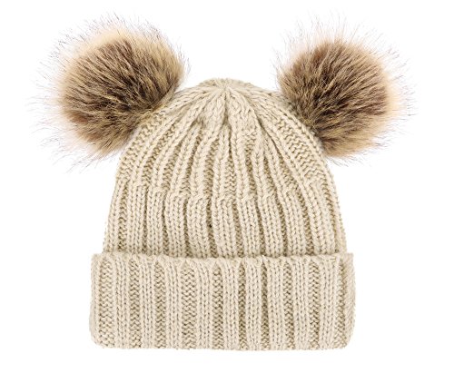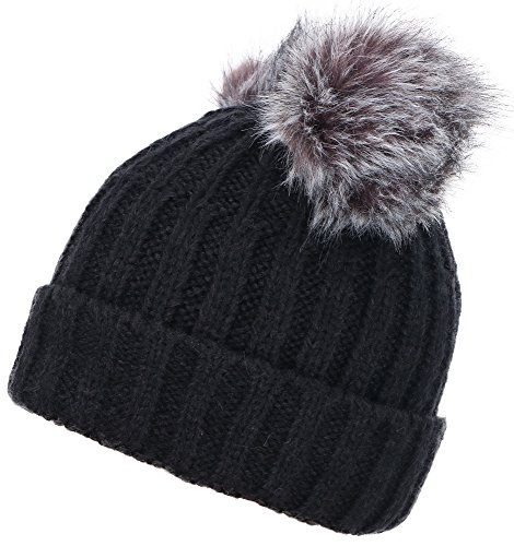 | Arctic Paw Cable Knit Beanie with Faux Fur Pompom Ears |
