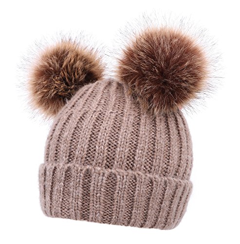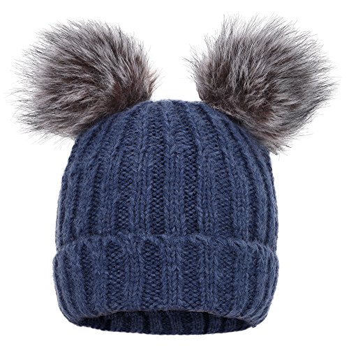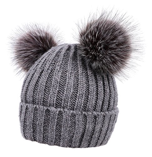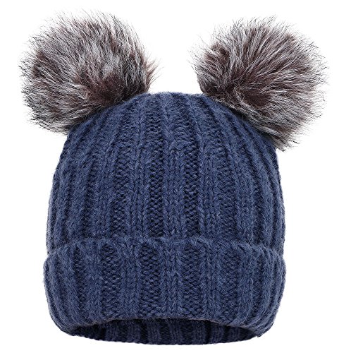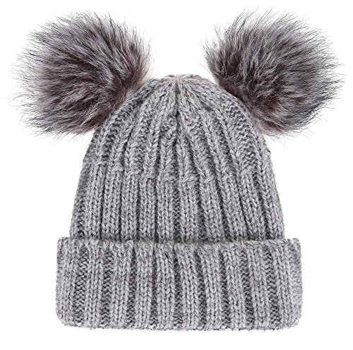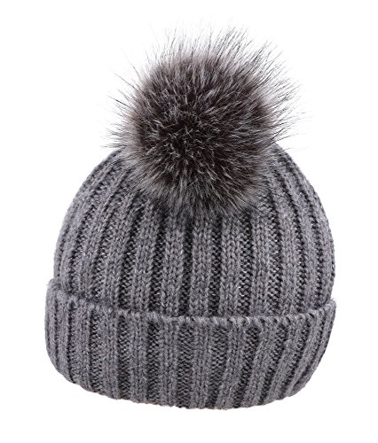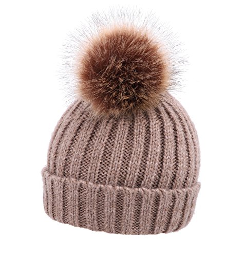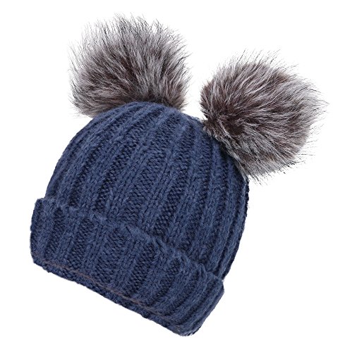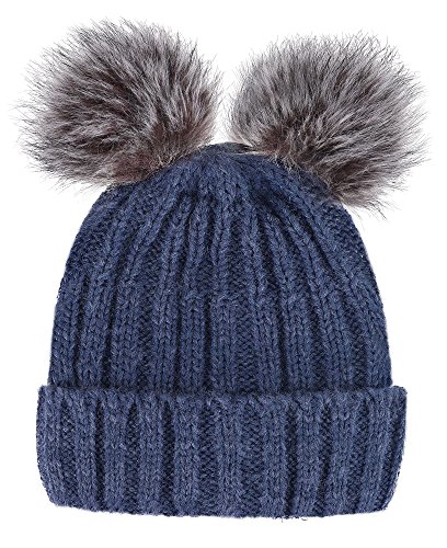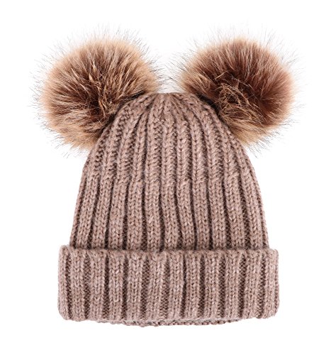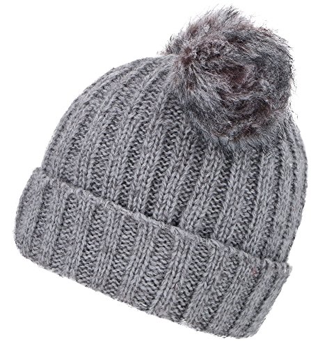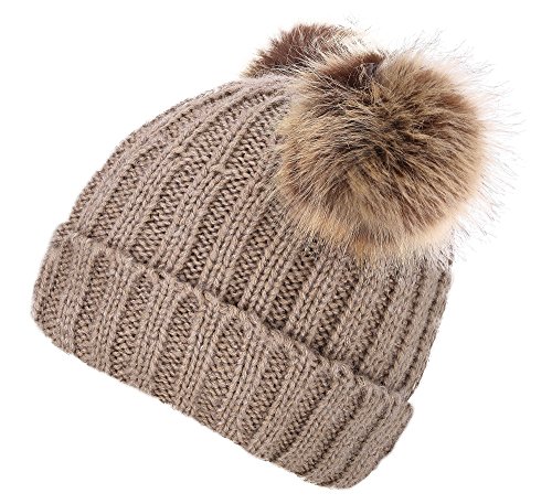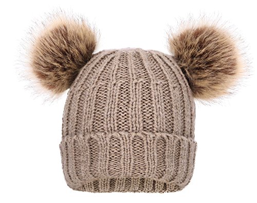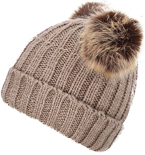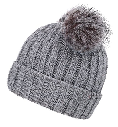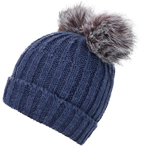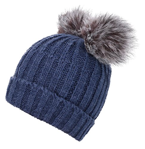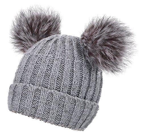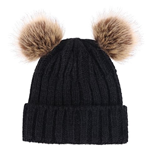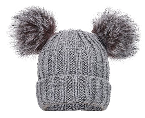 | Arctic Paw Cable Knit Beanie with Faux Fur Pompom Ears |