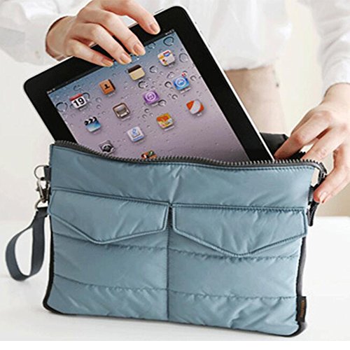 HOYOFO Multifunctional Travel Cosmetic Bag Zippered Gadget Pouch Portable iPad Storage Bag, Blue