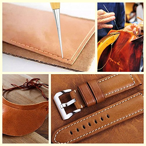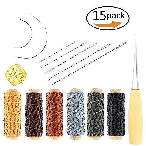 - 15PCS HAND STITCHING SET: This leather tools set includes 7 x Leather Sewing Needles, 1 x Stitching awl, 1 x Leather Sewing Piercing Tool, 6 x Leather Waxed Thread Cord, 1 x Sewing Thimble, can meet your basic needs for leather crafts.