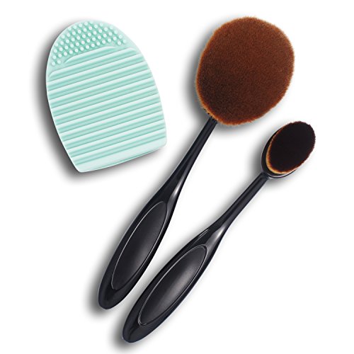 Feature : Package Includes: (Small Oval) Size: 148 X 22 X 21mm. Brush head size : 35 X 22 X 21 mm. (Large Oval) Size: 165 X 48 X 30 mm. Brush head size: 60 X 45 X 30 mm. (Washing Brush Cleaner) 7.5 X 5.5 X 2.5 cm/ 2.96 X 2.2 X 0.98 inches. / Easily get an evenly blended, flawless, smooth finish with your favourite foundation, blush and powder. Oval shape brush head design for small areas (eye lid shadow, nose shadow) and detail makeup (jaw lines). Compact and lightweight which is suitable for travelling and home use. / Washing Brush Cleaner made from high quality silicone which is gentle and will not damage your brush. Small knobs on the top for foaming and lathering . Oval Brush with easy-to-grip handle. Gentle bristles which will cause no burden to your skin. / Material: (Oval Brush) ABS Plastic and nylon. (Washing Brush Cleaner) Silicone. Color: (Oval Brush) Black/Brown. (Washing Brush Cleaner) Mint Green. / Simple tool which will make you become a perfect makeup artist.