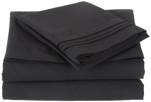 Luxury Embroidered Microfiber 4 piece Sheet set with Triple Line Embroidered Pillow Cases ,Queen Size ,Black