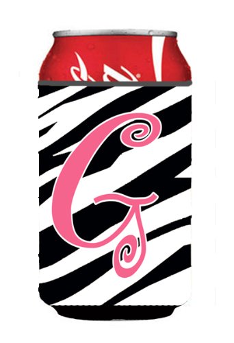 Letter G Initial Monogram - Zebra Stripe and Pink Can or Bottle Beverage Insulator Hugger