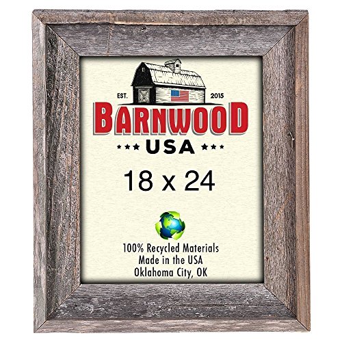 - This 18x24 inch wooden picture frame is made of eco-friendly, up-cycled reclaimed wood.