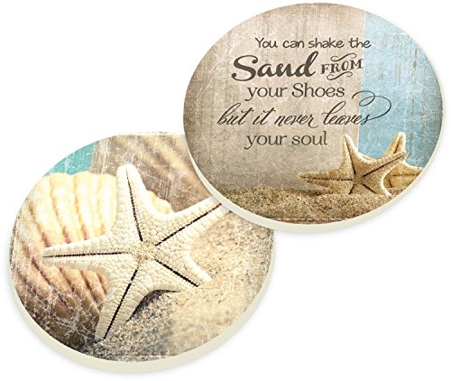 You Can Shake The Sand From Your Shoes Coastal Seashell Ceramic Car Coaster Pack (Set of 2)