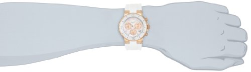 -. Feature : Round watch in stainless steel with mother-of-pearl dial, knurl-edge crown, and white silicone band / Ronda 5030d Swiss movement with analog display / Protective anti-reflective sapphire crystal dial window / Features textured chronograph subdials, date window, bidirectional bezel, and buckle closure / Water resistant to 330 feet (100 M): suitable for snorkeling, as well as swimming, but not diving