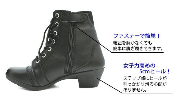 | 簡単に脱ぎ履き可能なサイドファスナーや、足首部分に動きやすいストレッチ素材を使用するなど、ライディングブーツとしての機能を充分に兼ね備えたブーツです。 |
