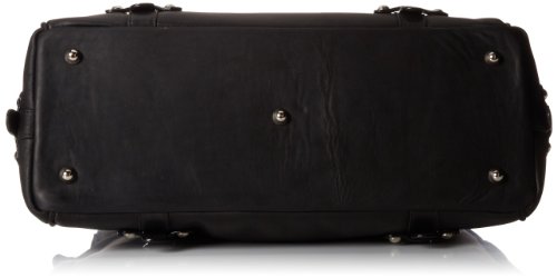 -. Feature : Fully lined / Inside zippered pocket, multiple interior pockets. One larte interior pocket measuring 7 inchx7 inch and one for cellphone, pocket for business cards, three loop pen holders, removable leather clip for keys / Decorative drawstring, bag closes on top with heavy duty zipper / Nickel hardware and buckles on all four sides / Removable padded laptop holder large enough to hold most 15 inch or 17 inch diagonal laptop
