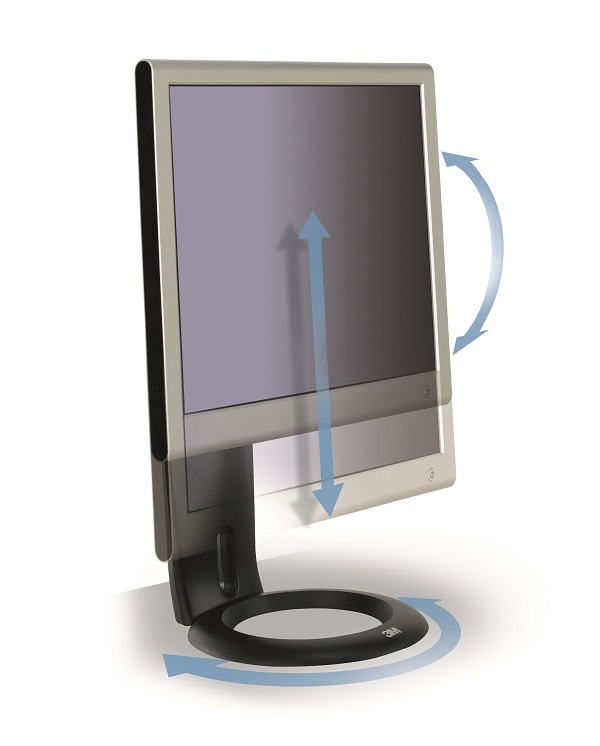 Upgrade your LCD monitor's basic stand by adding the ergonomic benefit of height, tilt, and swivel adjustments- all with just a touch. This 3M™ Easy-Adjust Monitor Stand features Easy-Adjust technology, so you can make quick adjustments that will benefit your ergonomic comfort and work productivity. This freestanding monitor stand swivels 360 degrees, so you can share your screen for quick collaborations at your desk, and then quickly move it back to your preferred position.
