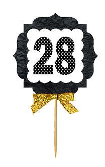 28th Birthday / Anniversary Gold Ribbon Hand Crafted Novelty Cupcake Decoration Toppers / Picks -12ct