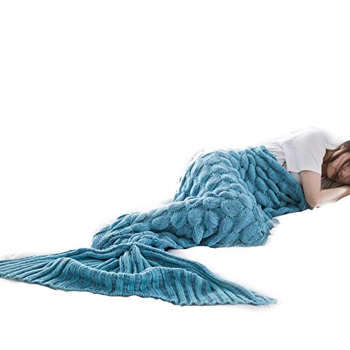 Material: mermaid tail blanket is made of poly/cotton blend material-Cozy knitting blanket. Eco-friendly and Skin-friendly for health. Suitable for All Seasons. Super soft and durable & lightweight. Bring you a skin-perfectly experience.