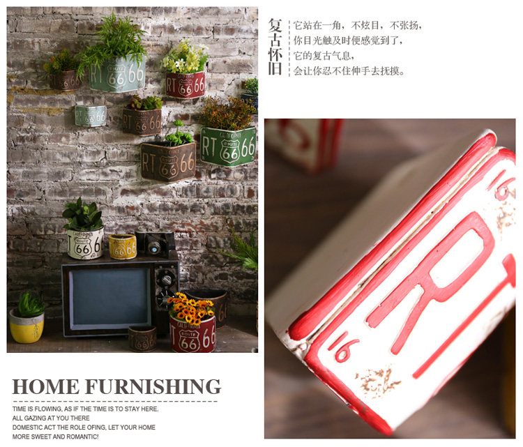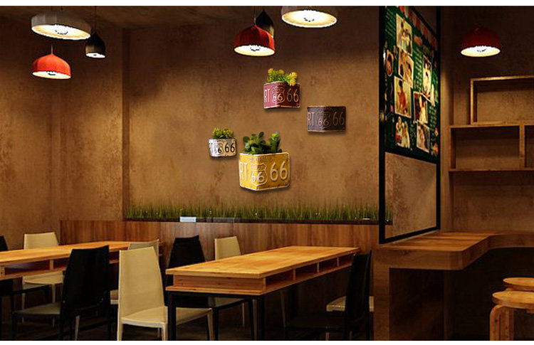 创意奶茶店墙壁饭店餐厅墙面软装饰品服装店墙上花盆壁挂植物挂件