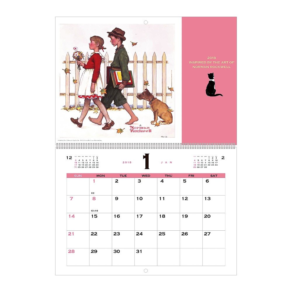 It is a wall-mounted calendar that you can enjoy the view of the world of popular writer Norman · Rockwell.