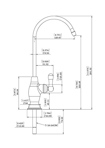 fits opening between 7/8” and 1-1/4”; fits countertop up to 2" thick; connected with 1/4” drinking water supply tube (not included)