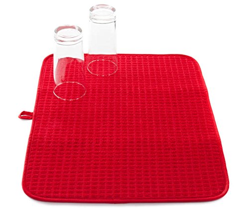 Dish Drying Mat, Beige Waffle Pattern, Reversible Red