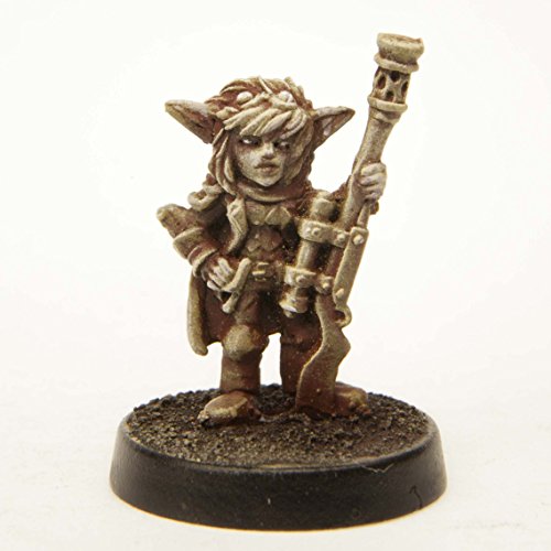 -. Feature : This 22mm tall female Gnome Long Gunner Female has a great amount of detail for dungeon-crawling, RPGs and table top war games. / Miniature could be used as a Sniper, Ratling, Ranged Dps, Sharp Shooter, Hunter. This Gnome Long Gunner Female is equipped with a scoped r.i.f.l.e, cloak, ammo pouch and light armor. / Included with each mini is a slotted round plastic "creator" base. This base is not designed as a plug and play solution and requires some assembly and finishing (glue, putty, or other filler is recommended). Figure is made of 100% lead free pewter. / Figures are unpainted. The pictures of the painted miniatures are for inspiration and are only examples.