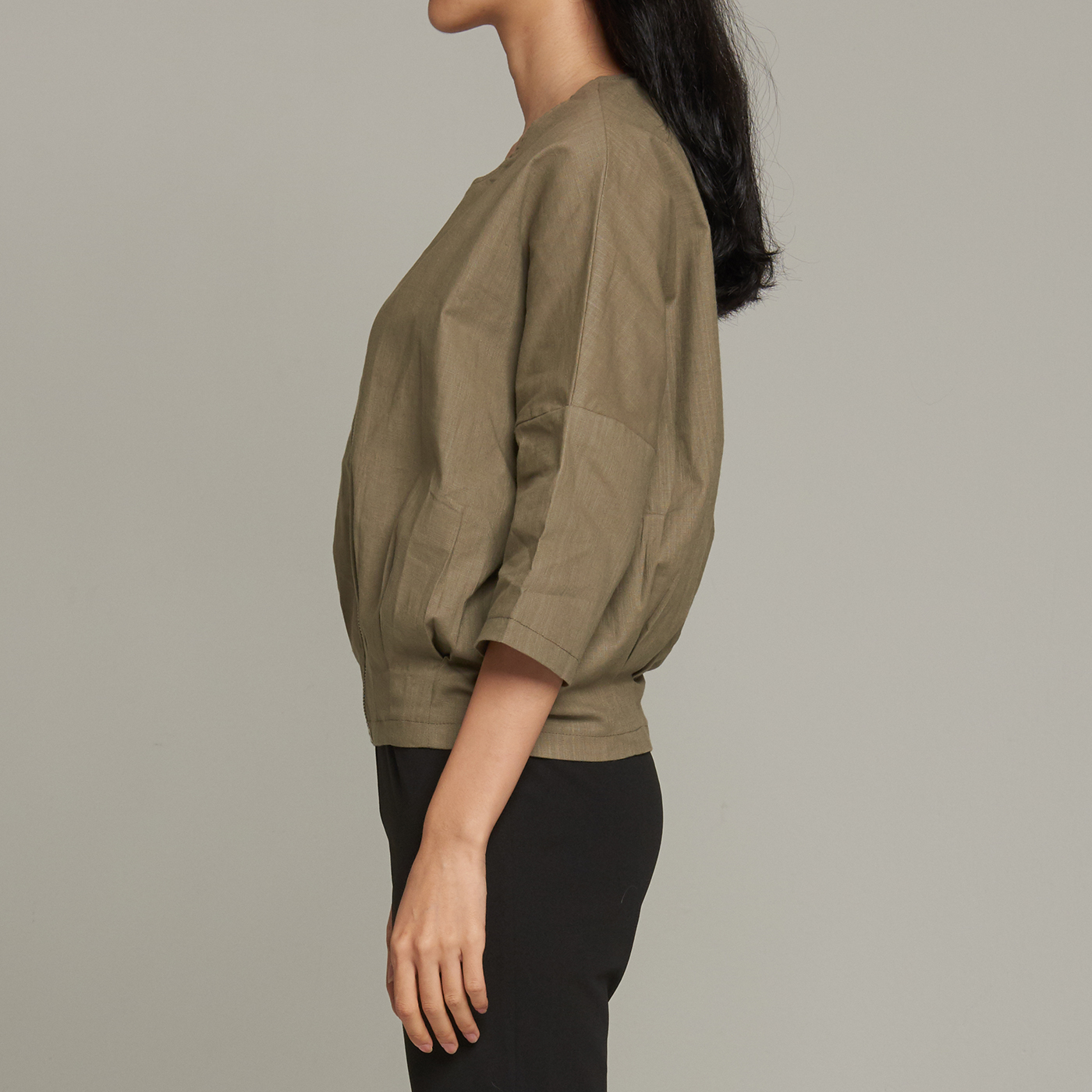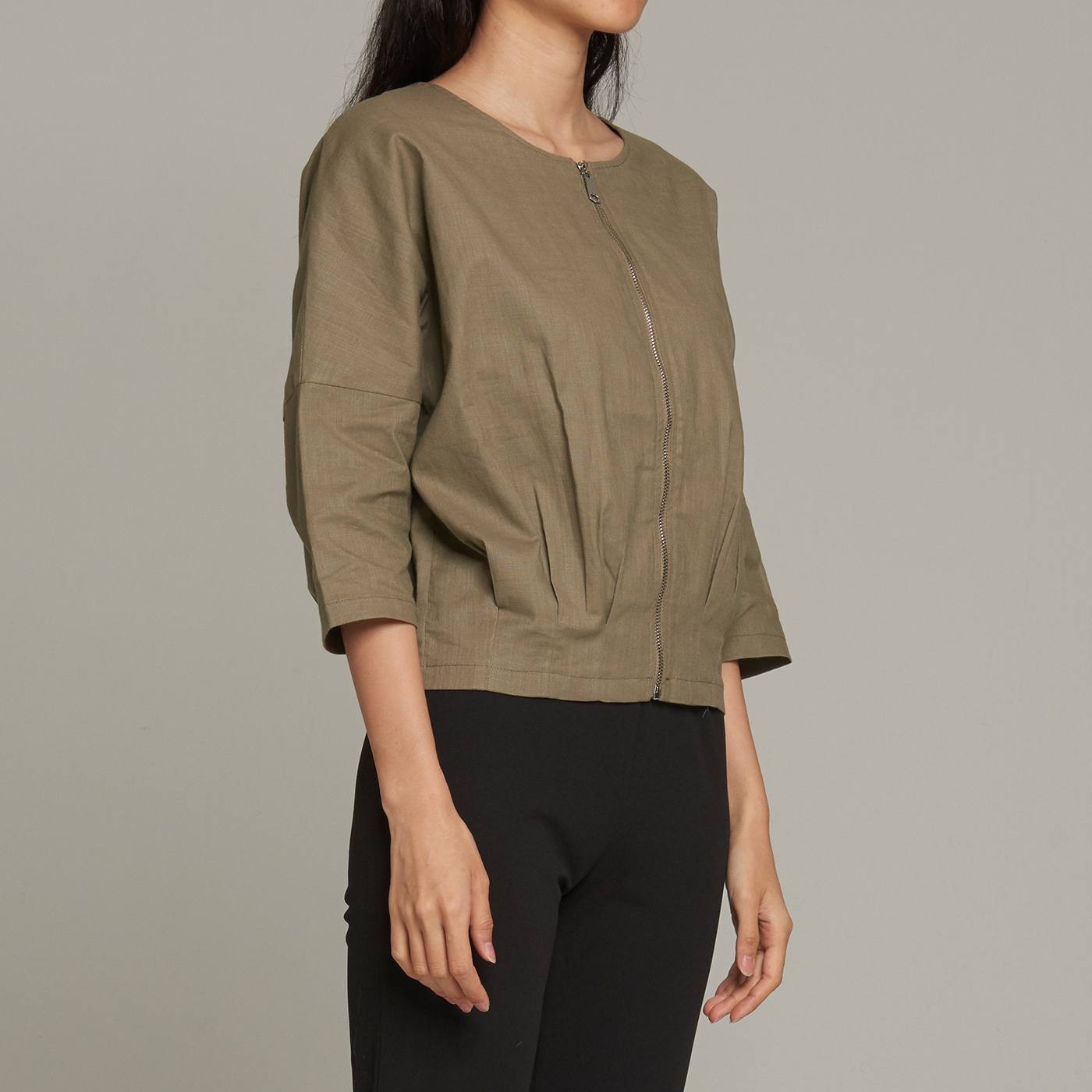 시스루 스트라이프가 고급스런 스타일의 봄버입니다.