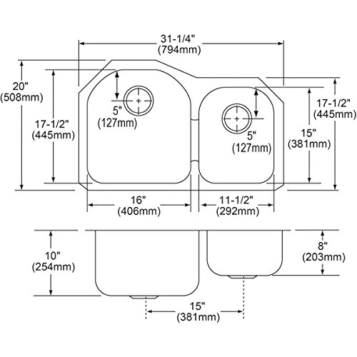 Elkay EGUH311910R Offset 60/40 Double Bowl Undermount Stainless Steel Kitchen Sink
