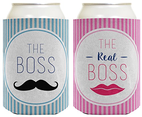 Bridal Shower Gifts The Boss The Real Boss Wedding 2 Pack Can Coolie Drink Coolers Coolies Pink Blue