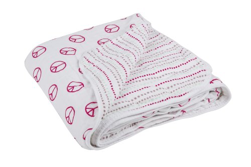Lassig Baby Cozy Blankets Soft 100% Cotton Muslin Fabric Pre-Washed Multi-Layers, Peace and Dots Girls