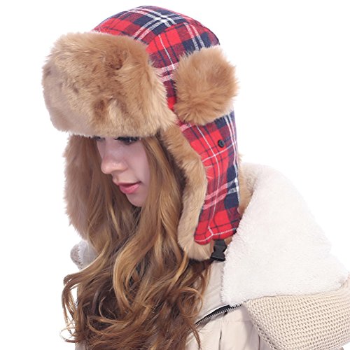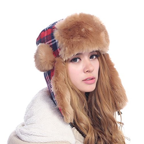 (CACUSS)/Accessories/Hats/DIRECT FROM USA/CACUSS Women's Winter Warm Plaid Bomber Wool Trapper Hat Ear Flap
