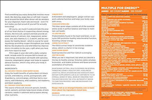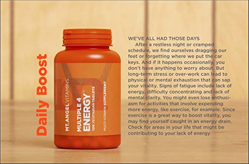 Studio : Mt. Angel Vitamins Publisher : Mt. Angel Vitamins Binding : Health and Beauty Product Description Getting adequate vitamins and minerals is important to maintain health - but sometimes your busy life calls for an extra energy boost. Multiple 4 Energy contains a dose of high-antioxidant green leafy vegetables and an assortment of berries to help fill in gaps in your diet. Adaptogenic ginger extract supports adrenal function, while spirulina helps to protect cell health so systems run smoothly. Predominately found in the heart and brain, co-enzyme Q10 promotes healthy mitochondrial function, boosting cellular energy. This complex also provides alpha-amylase, bromelain, acid stable protease and lipase to improve nutrient absorption. 0