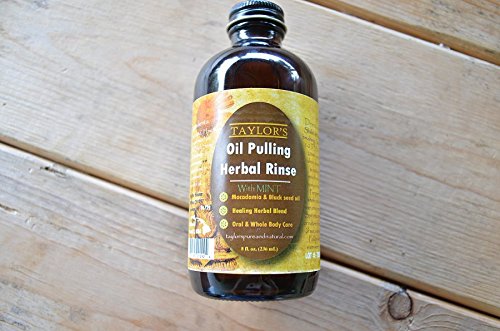TAYLOR'S Oil Pulling - Herbal Rinse {Natural Oral Care} * w/ Ancient Black Seed & Hawaiian Macadamia Nut Oil * Stored in GLASS (Mint, 8oz)