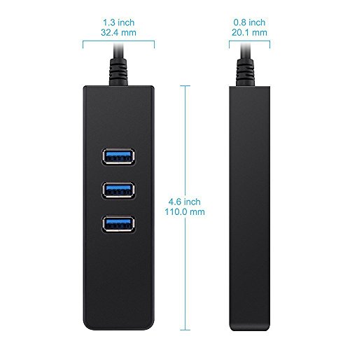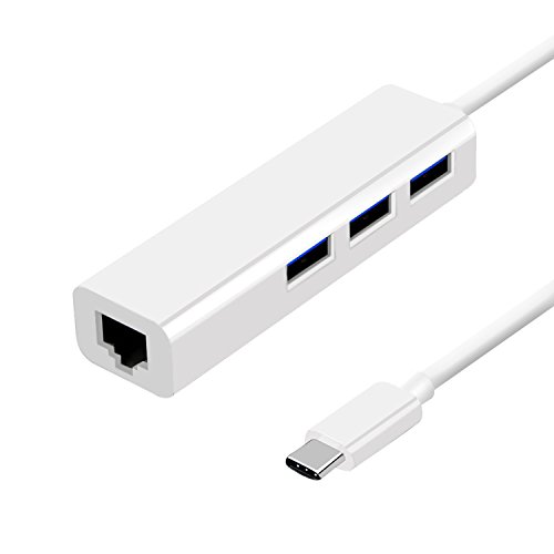 Rademax USB 3.1 Type C to USB 3.0 3-port hub with Gigabyte Ethernet Lan port adapter is specially designed for Apple New MacBook 13 inch laptop and other Type C supported devices