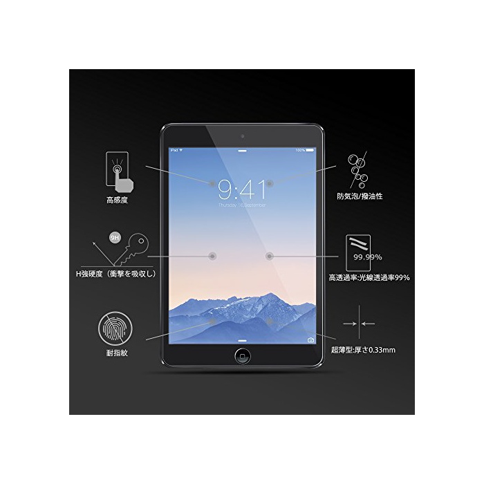 ★【초박,강경도】:강화 유리 필름 초박0.33mm,표면 경도9H에 내충격,비산 방지 가공에 의해 만일 갈라져도 유리 파편이 튀기 어렵고, 안전합니다.