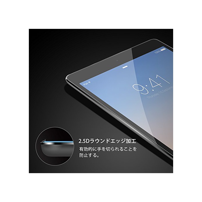 원본상품명: Coolreall ガラスフィルムiPad Air/Air2/Pro9.7インチ用 液晶保護 フィルム 高透明防爆裂スクラッチ防止泡ゼロ指紋防止クリア(9H 0.33mm 2.5D)