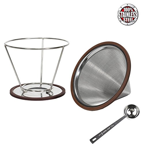 -. Title : 4 Coffee Filters Pour Over Coffee Filter 2-4 Cup 18\10(304) Stainless Steel Reusable Coffee Cone Coffee Maker and Holder Micro Filter Coffee Dripper and Coffee Scoop