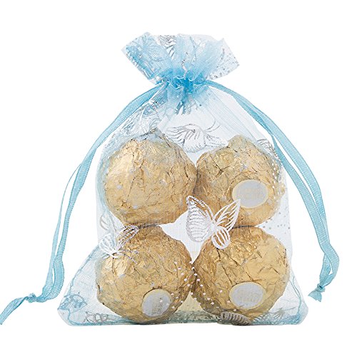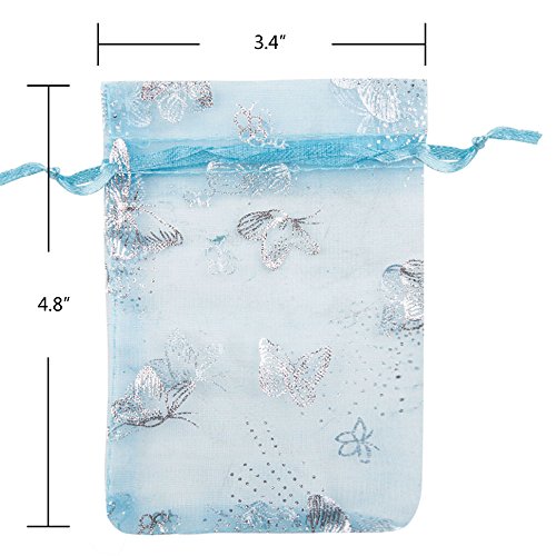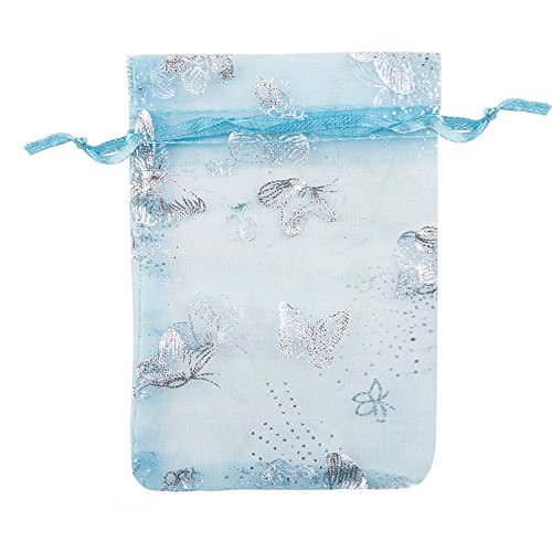 VIVOHOME Butterfly Drawstring Organza Gift Bags Pack of 100 Light Blue