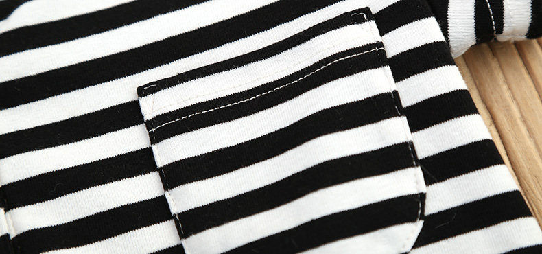 明贴口袋  左前胸明贴口袋,从视觉上打破条纹的繁复感,使整体美感更和谐。