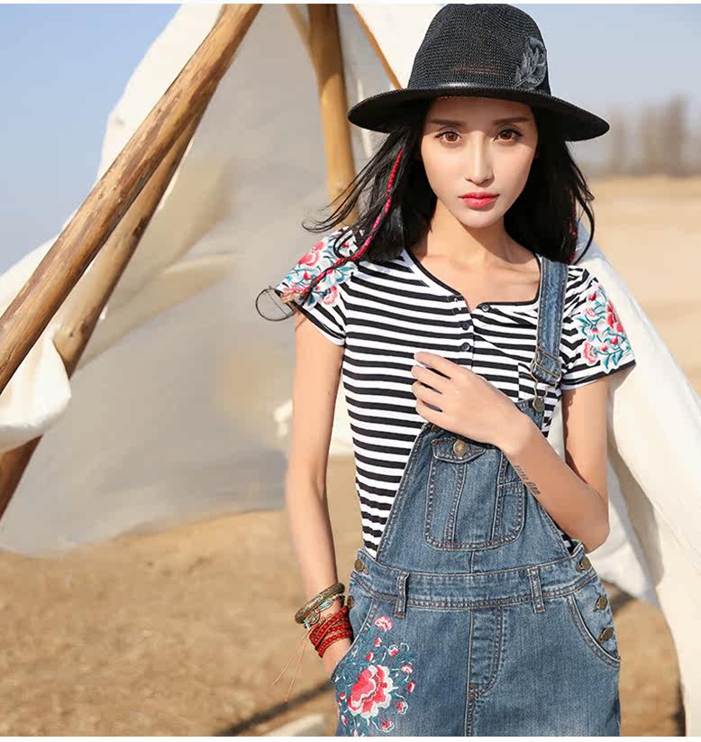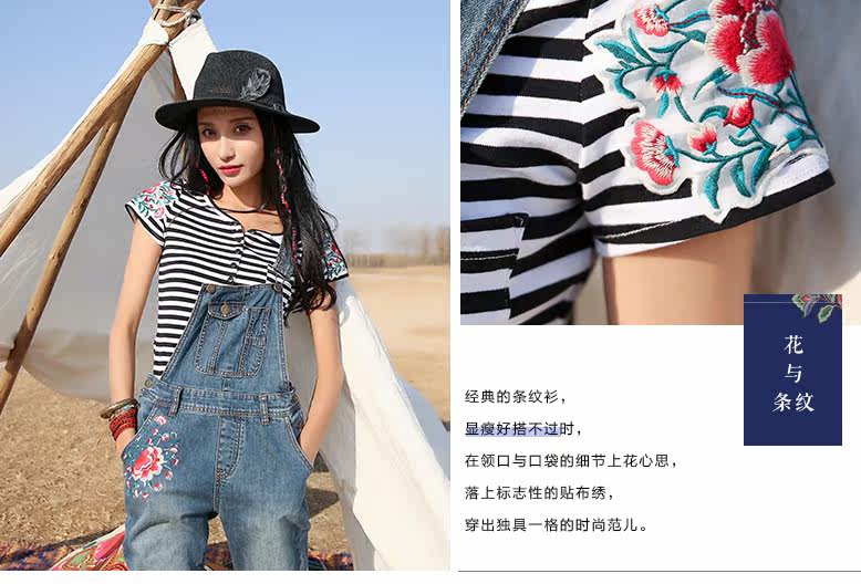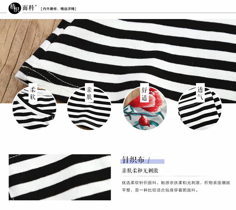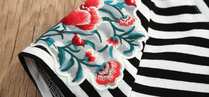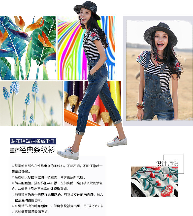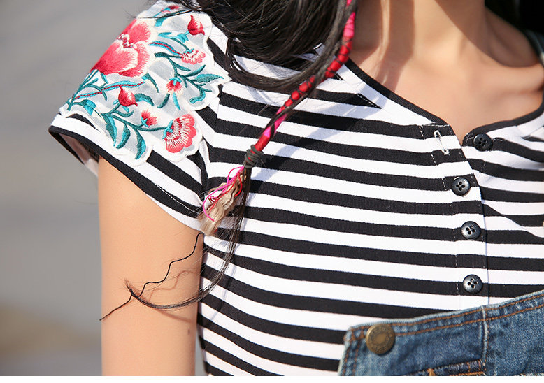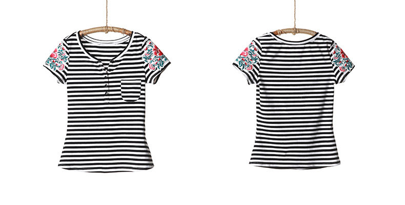 贴布绣短袖条纹T恤