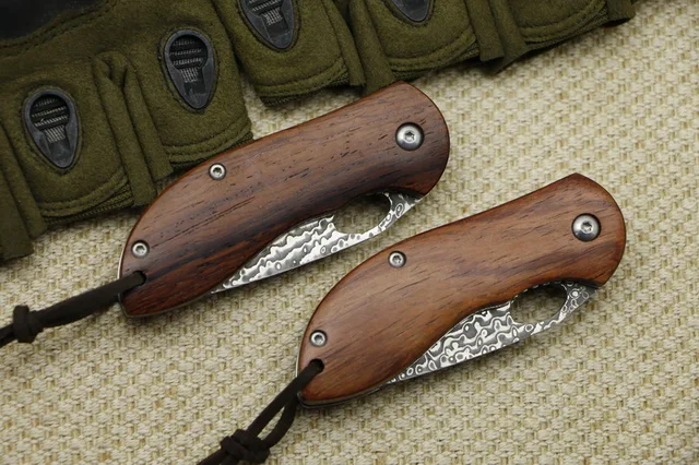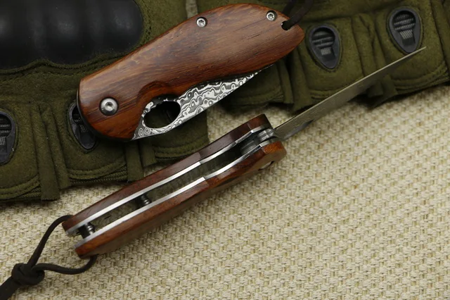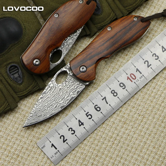 | [해외] LOVOCOO LV3504 접는 나이프 패턴 스틸 블레이드 나무 핸들 야외 플리퍼 접는 나이프 캠핑 사냥 포켓 나이프 EDC |
