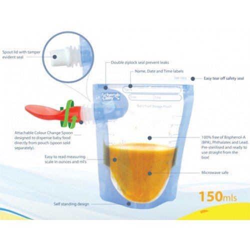 -. Binding : Baby Product -. Brand : Cherub Baby -. Color : Clear -. EAN : 0736211868374 -. Feature : Fits all major brand baby food pouches available from the supermarket / Spoon changes color (to clear) when the baby's food is too hot / BPA Free / Simply wash in warm soapy water and rinse / Place it on the top tray of your electric steam steriliser or in a microwave steriliser to sterilise -. IsAdultProduct : 0 -. Label : Cherub Baby -. Manufacturer : Cherub Baby -. MPN : fo -. PackageQuantity : 1 -. PartNumber : fo -. ProductGroup : Baby Product -. ProductTypeName : BABY_PRODUCT -. Publisher : Cherub Baby -. Studio : Cherub Baby -. Title : Cherub Baby 2-PK Colour Change Food Pouch Spoons - CHFP002 -. UPC : 736211868374