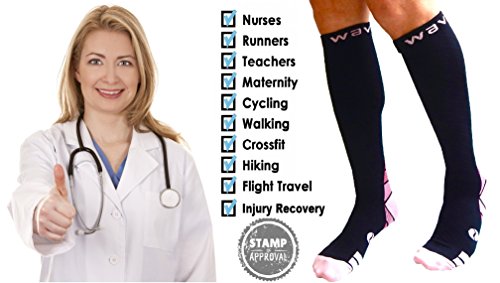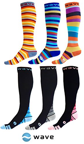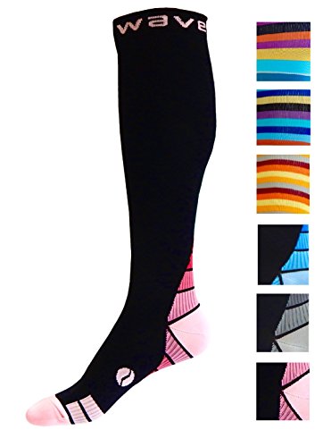 Compression Socks (1 pair) for Women & Men by Wave - Best For Running, Athletic Sports, Crossfit, Flight Travel, Maternity Pregnancy, Nursing