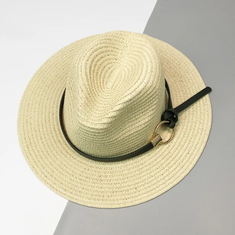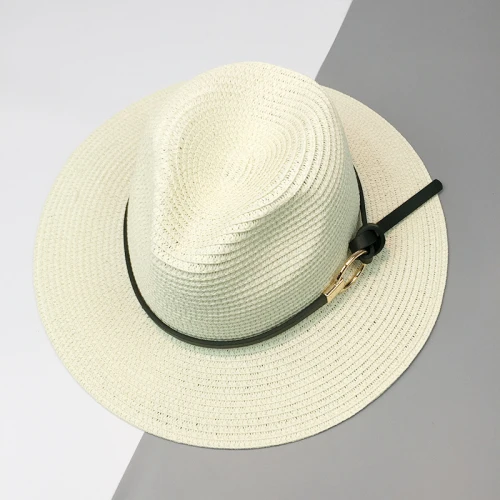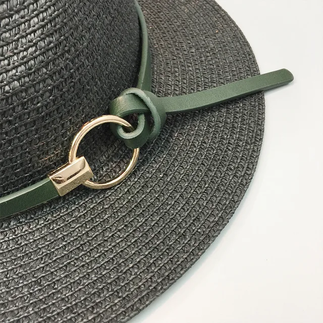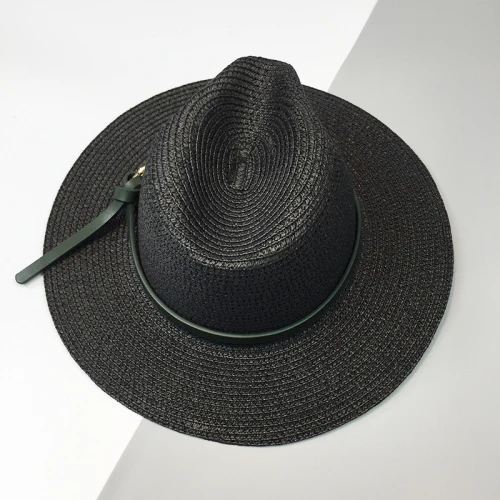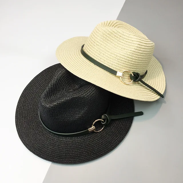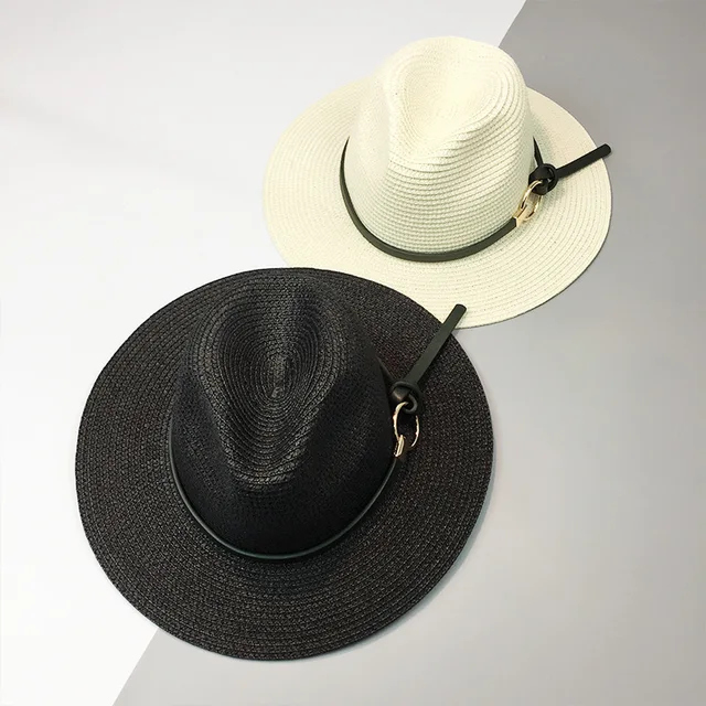 | [해외]HT1120 2017 새로운 패션 블랙 밀짚 모자 챙이 넓은 여름 태양 모자 벨트 솔리드 트릴 페도라 파나마 모자 여성 |