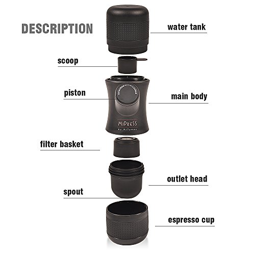 ESPRESSO MAKER: high quality black press for travel, camping, hiking, office or home kitchen. 1 year warranty