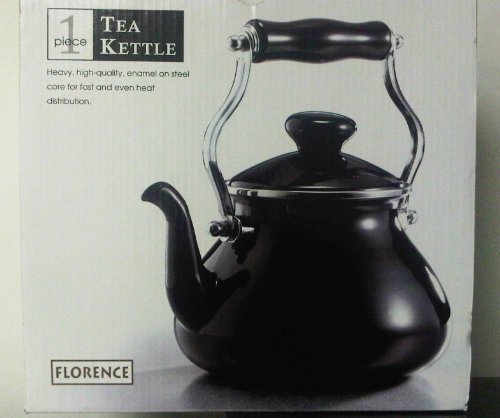 Florence Tea Kettle (Black): 2.5 Quart Heavy, High Quality, Enamel on Steel core for fast and even heat distribution. Special formulated porcelain ceramic material, is highly resistant to moisture, oils, food orders, scratches and never interacts with foods or flavors.Feature