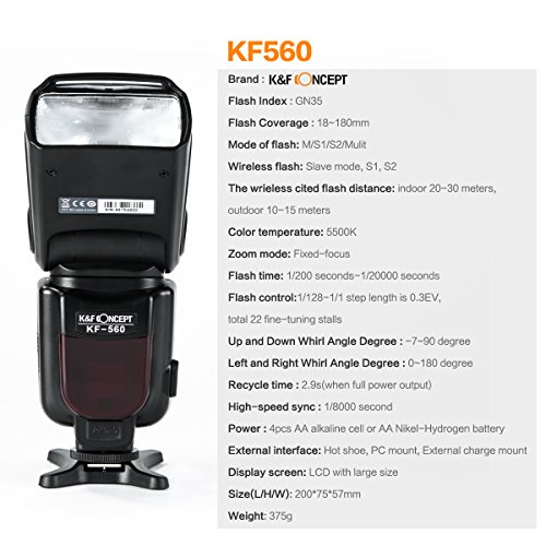 K&F Concept High-Speed Sync Speedlite KF-560 Hot Shoe Wireless Flash S1, S2 Mode for Canon Nikon DSLR Camera