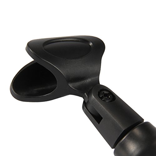 -. Feature : The Mic clip is 180-degree adjustable, can be set to suitable angles as you need / Top can be removed, then the base is just a perfect showing stand / Scratch resistant, powder coated black finish, solid die cast metal round base / The heavy base and high elasticity mic clip ensures ultra solid and stable positioning / Suitable for holding the microphone on the desk for meetings, lectures, speaking, podcasts, screencasts or video chats,MSN/Skype