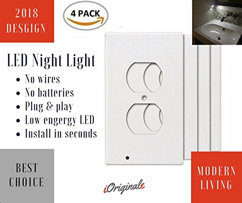 Outlet Wall Plate Cover With LED Night Lights - No Batteries, No Wires, Easy Installation (Duplex 4 Pack) by iOriginale