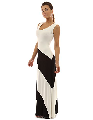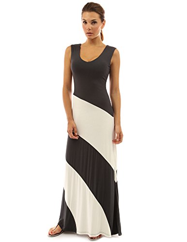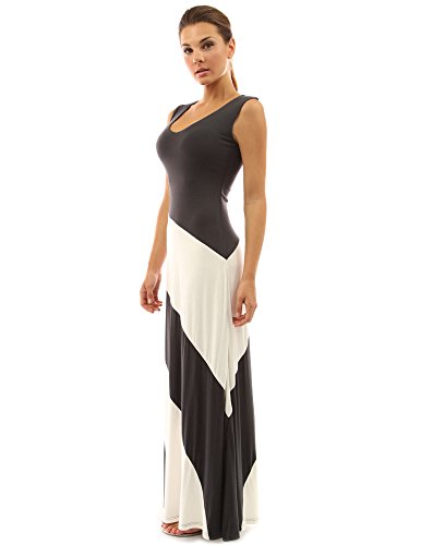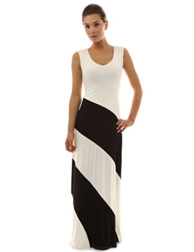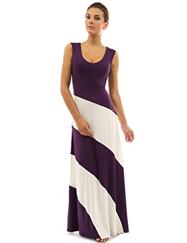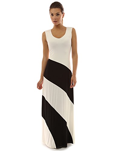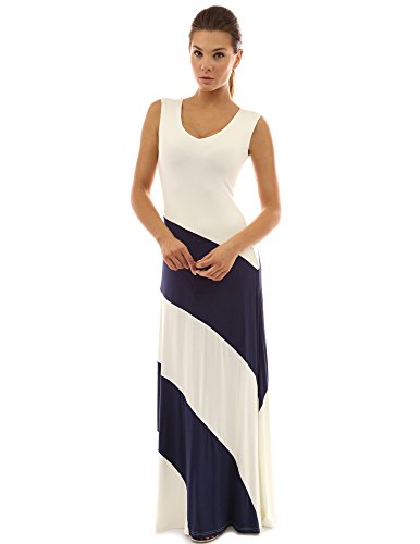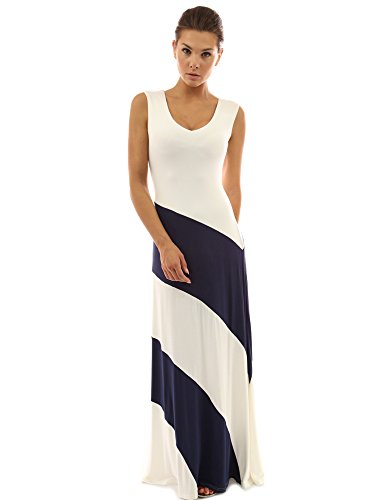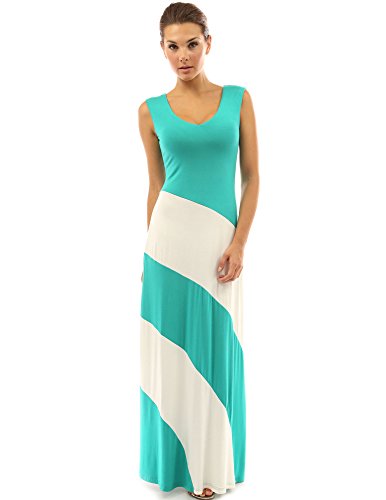 Product DescriptionPattyBoutik V Neck Sleeveless Striped Full Length Spring Summer Beach Maxi Dress. Model in pictures is 5 feet 8 inches (173cm) tall wearing a pair of flat sandals.0