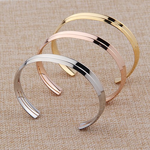 -. Feature : ★Material: High Quality 316L Stainless Steel / ★Specification: Diameter: 2.4 inches; Opening: 1.3 inches; Width: 0.4 inches; Color: Gold, Rose Gold, Silver. TIPS:manual measuring permissible error / ★High Quality Well Polished Finish, comfort to Wear / ★High-quality Ion Plating: using excellent electroplate technique that guarantees life-time color retention. / ★Package with a velvet bag, 60 Days Money Back Guarantee
