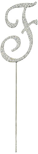 Unik Occasions Sparkling Collection Crystal Rhinestone Monogram Cake Topper - Letter F, Small, Silver