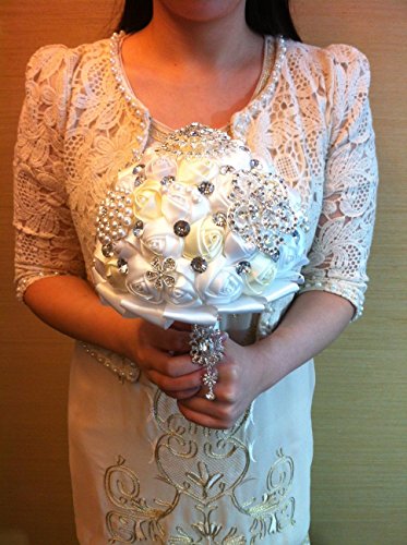 PLEASE NOTE: The bouquet you will get is generally the same as on the pictures. Sometimes the designer, M.Ching, would use a similar brooch if a particular brooch is out of stock. She guarantees the general feel of the bouquet would be definitely the same as described. Rest assured most of the brooches are the same but, sometimes, if a particular brooch is out of stock, she will replace it with a similar one. We want to see a happy bride and a happy customer so we make a note here to. We wish you a happy wedding day!