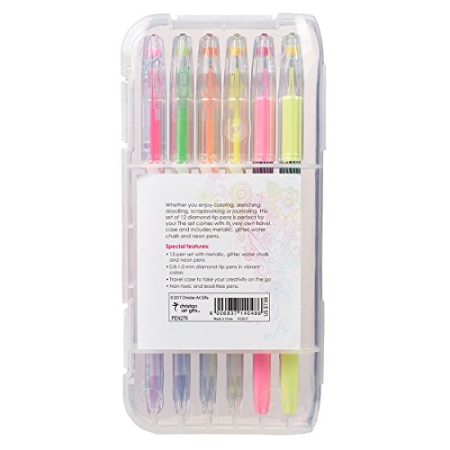 -. Title : Gel Pen Set, 12 Pack Assorted Colors - 2 Metallic, 4 Water Chalk, 2 Glitter, 4 Neon