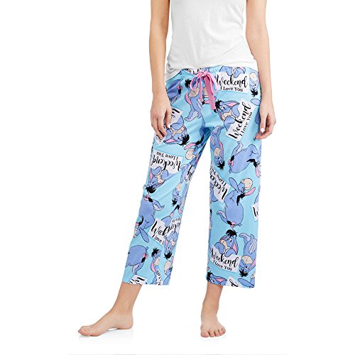 Channel your favorite Disney character in these officially licensed Eeyore women's knit capri pajama pants. You'll love the fun all-over Eeyore print of these soft sleep pants. The capri length will keep you comfortable won't make you too hot when you're curled up under your blankets. Made of durable cotton, these pants feature a covered elastic waistband with a twill tape drawstring and have a relaxed fit. Pair it with your comfiest sleep shirt and youre ready to hit the hay.Feature